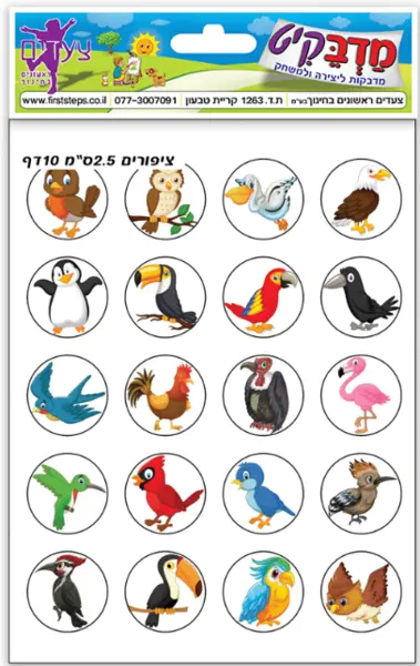 מדבקות ציפורים 10 דפים